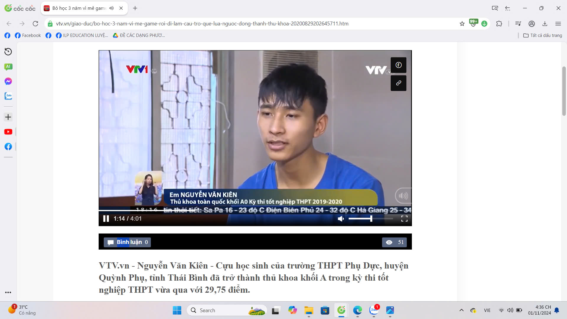 Khóa học video 4 môn: Toán, Lý, Hóa, Sinh trên Website ILP